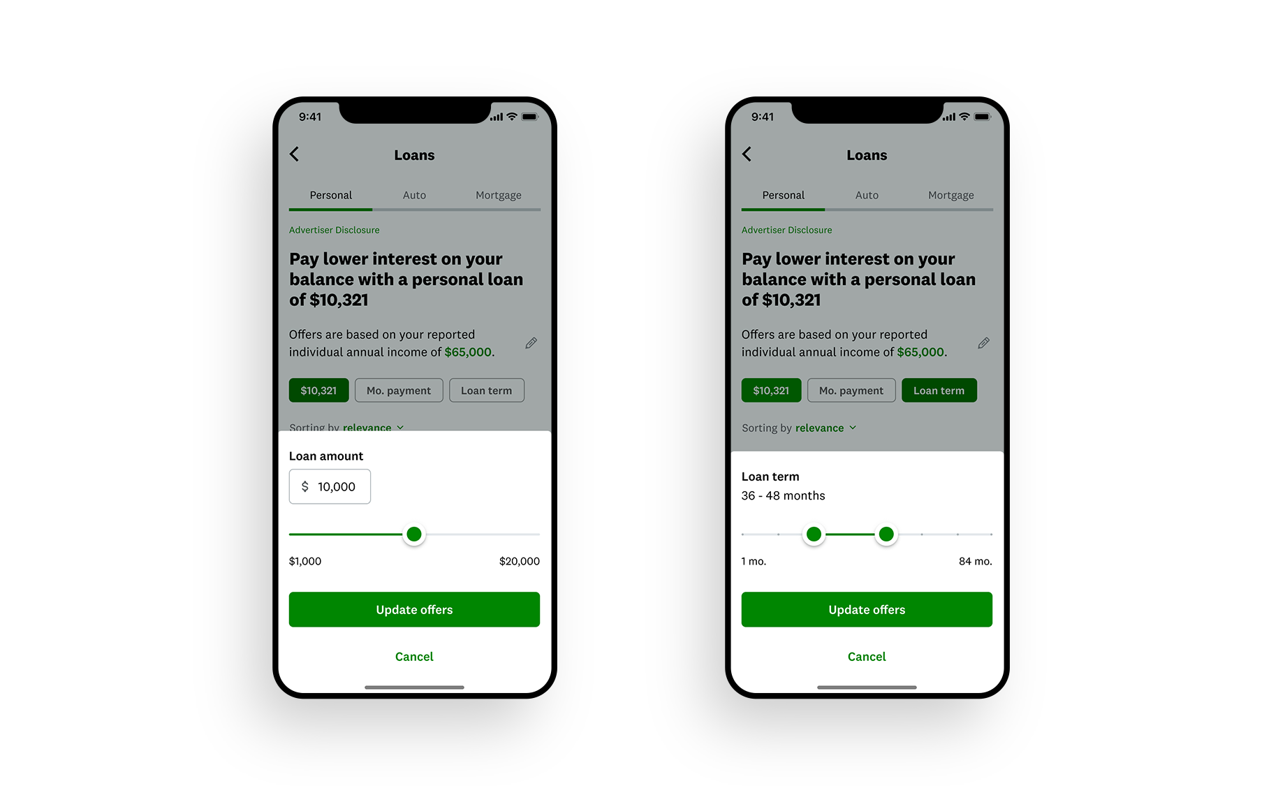 The process began by gathering Credit Karma in-product and proposed slider examples. Based on these examples, I was able to detail slider options that would address the different use cases needed and start to define when to use and when not use a slider, and when to use a different component.