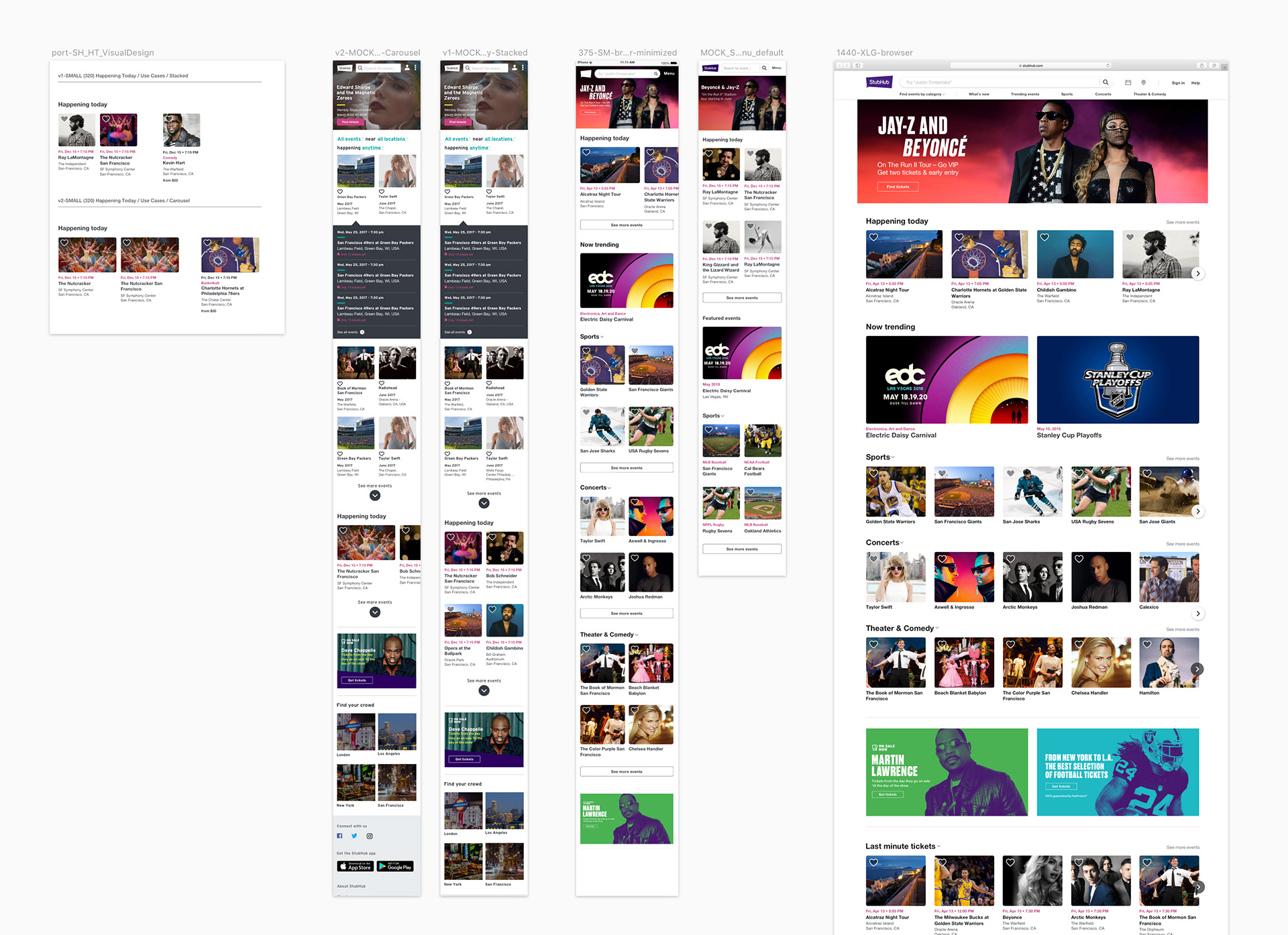 "Happening Today" was the first in a series of flexible, modular Event & Performer components that could be used for multiple types of content across the product, organized and surfaced by time, genre and category, enabling users to easily discover events.